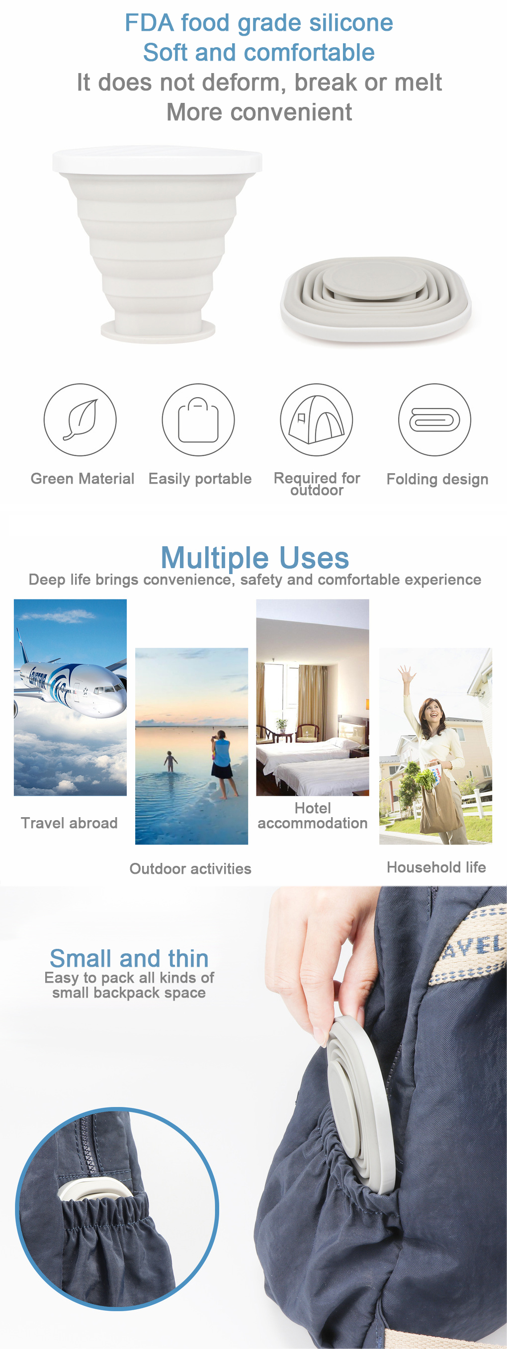 | Product name | Silicone folding travel cup |