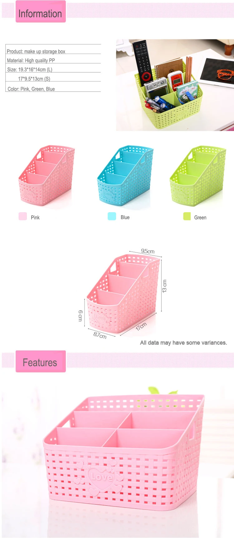 | Color | Blue/Green/Pink/Khaki |